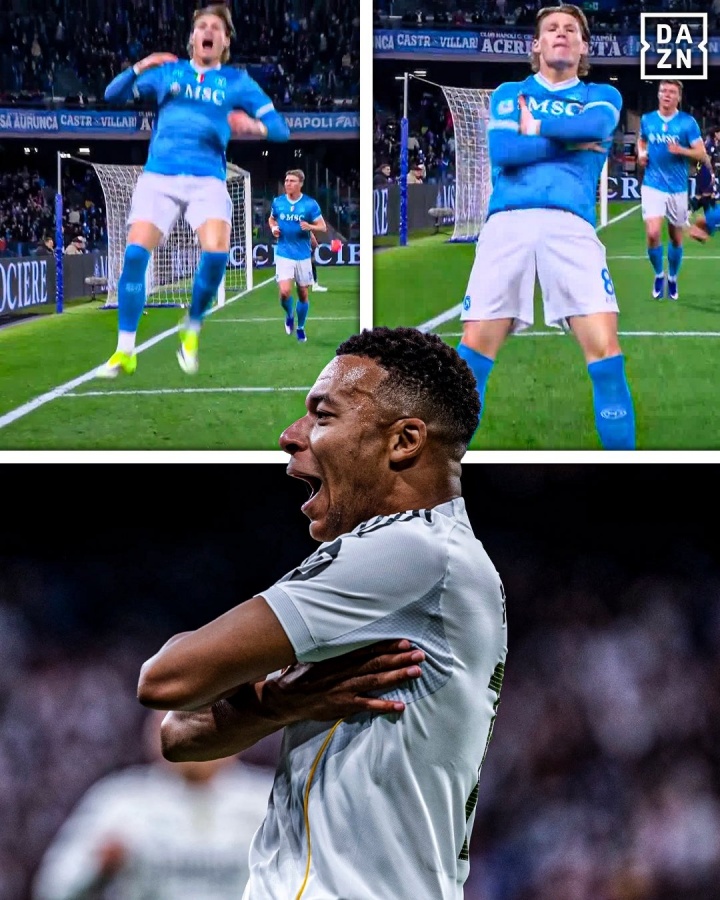 本场比赛第10分钟麦克托米奈进球,随后做出的庆祝动作酷似姆巴佩。但是随后VAR介入,判罚此粒进球越位在先,进球无效。
